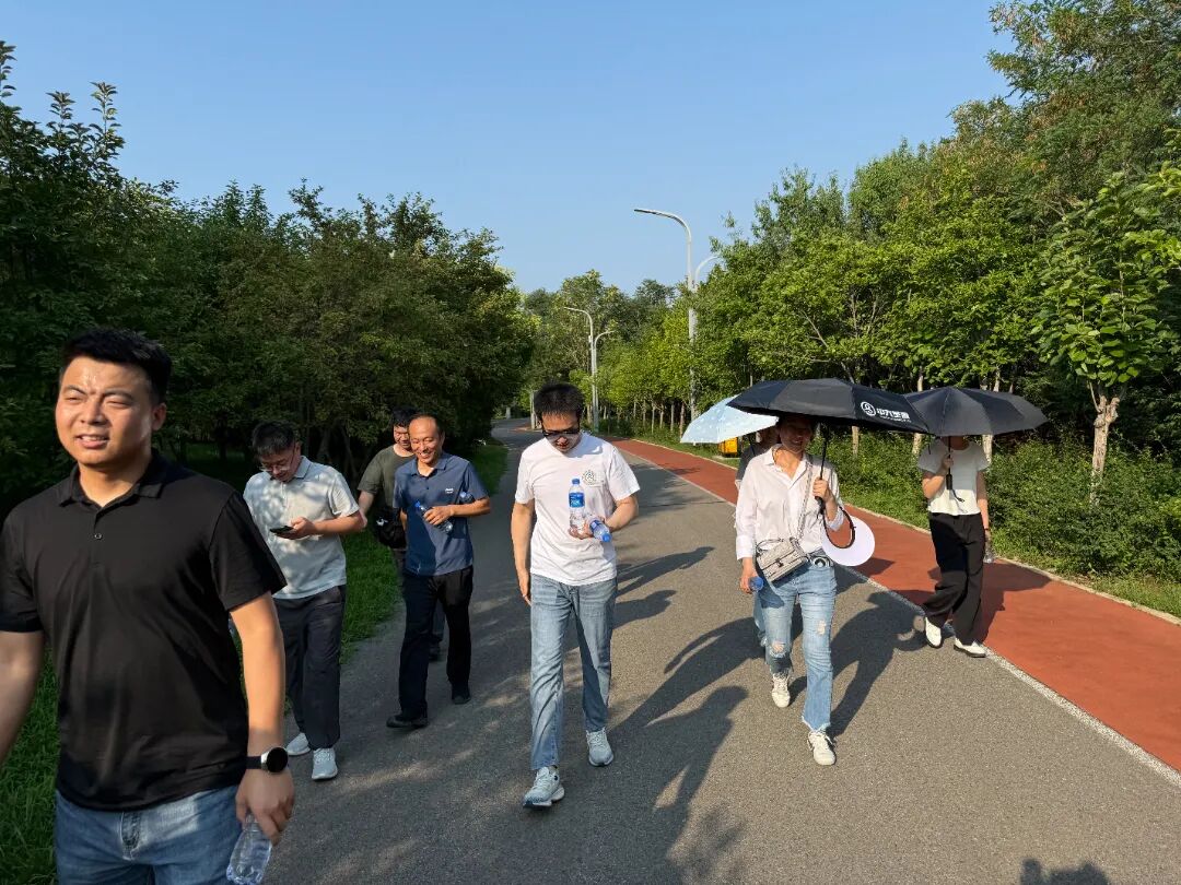 当日下午16:30,全体员工在龙泉湖公园南门集结。尽管盛夏热浪袭人,却无法阻挡大家高涨的热情。同事们身着轻便的运动装,在欢声笑语中,踏上了充满期待的徒步之旅。出发前,领队人员详细讲解了徒步路线及安全注意事项。随着一声响亮的“出发”指令,一支色彩斑斓的队伍沿着公园步道有序前行,在绿树成荫的湖畔,迈出了团结奋进的第一步。
